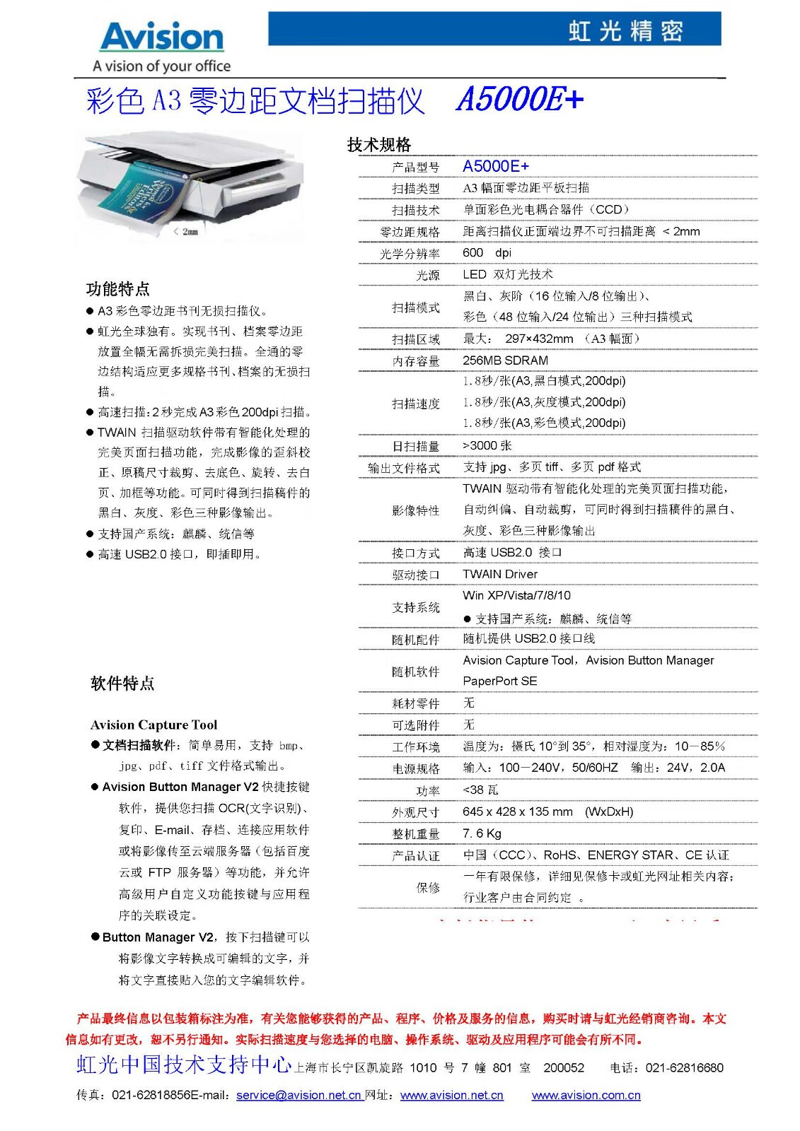 虹光/Avision A5000E+ 掃描儀